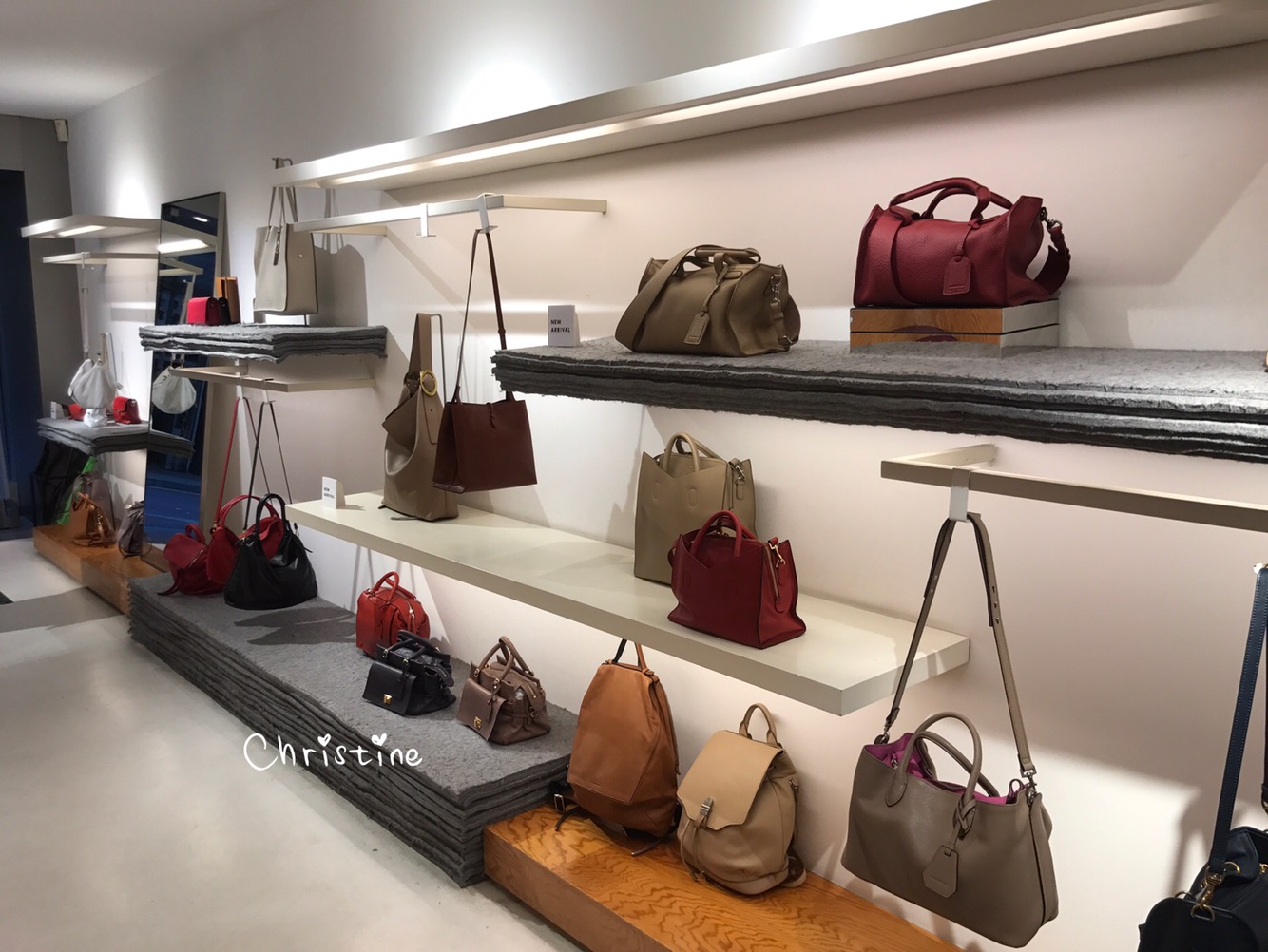第一個介紹的是台灣人必逛的【RABEANCO】包包品牌,以皮製為主,價格實惠,很難空手走出去。重點是我朋友身上揹的是她上次的戰利品,小小一個肩包居然還能塞進摺疊傘,於是我試揹了類似款式後二話不說直接購入!